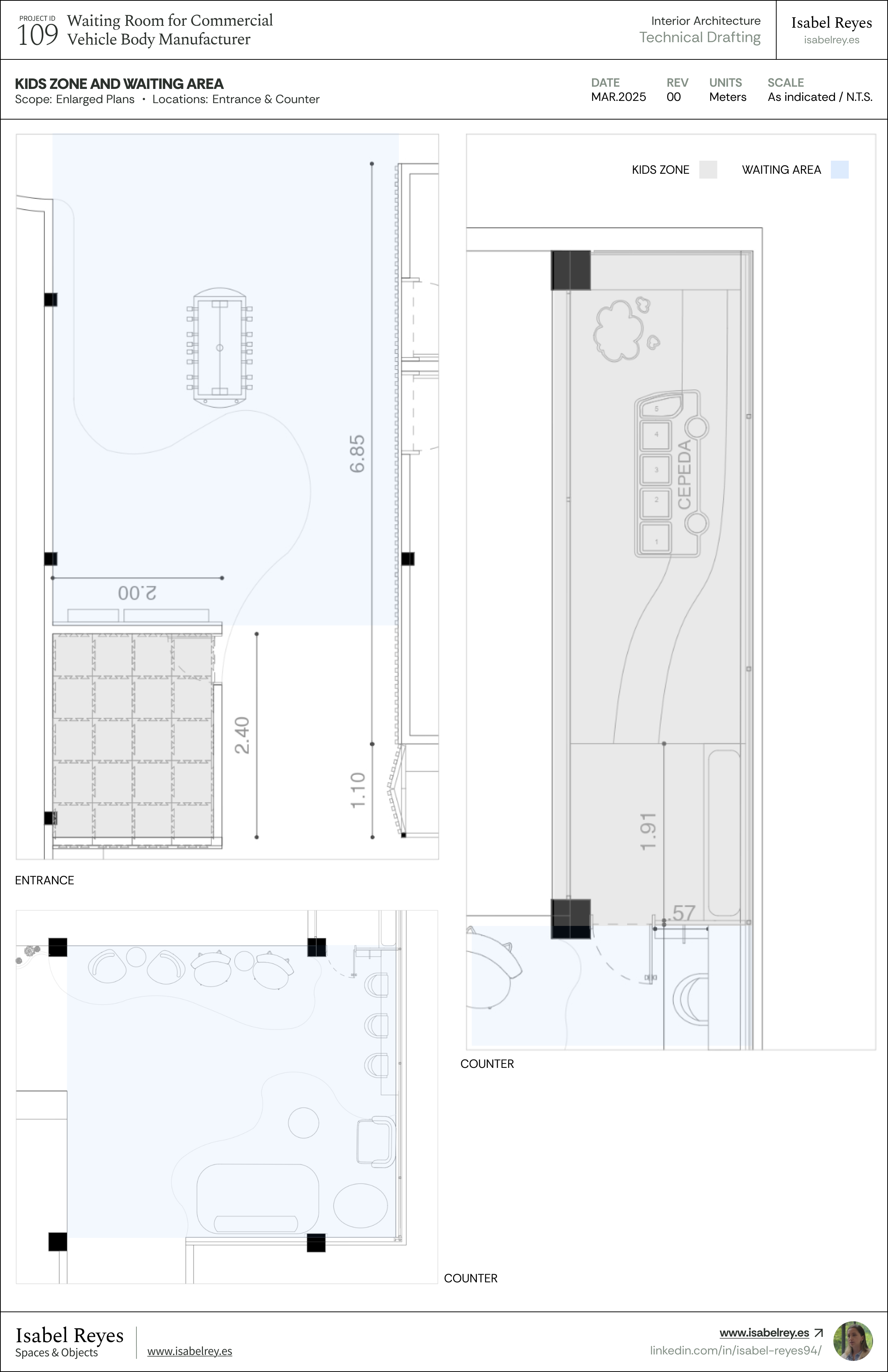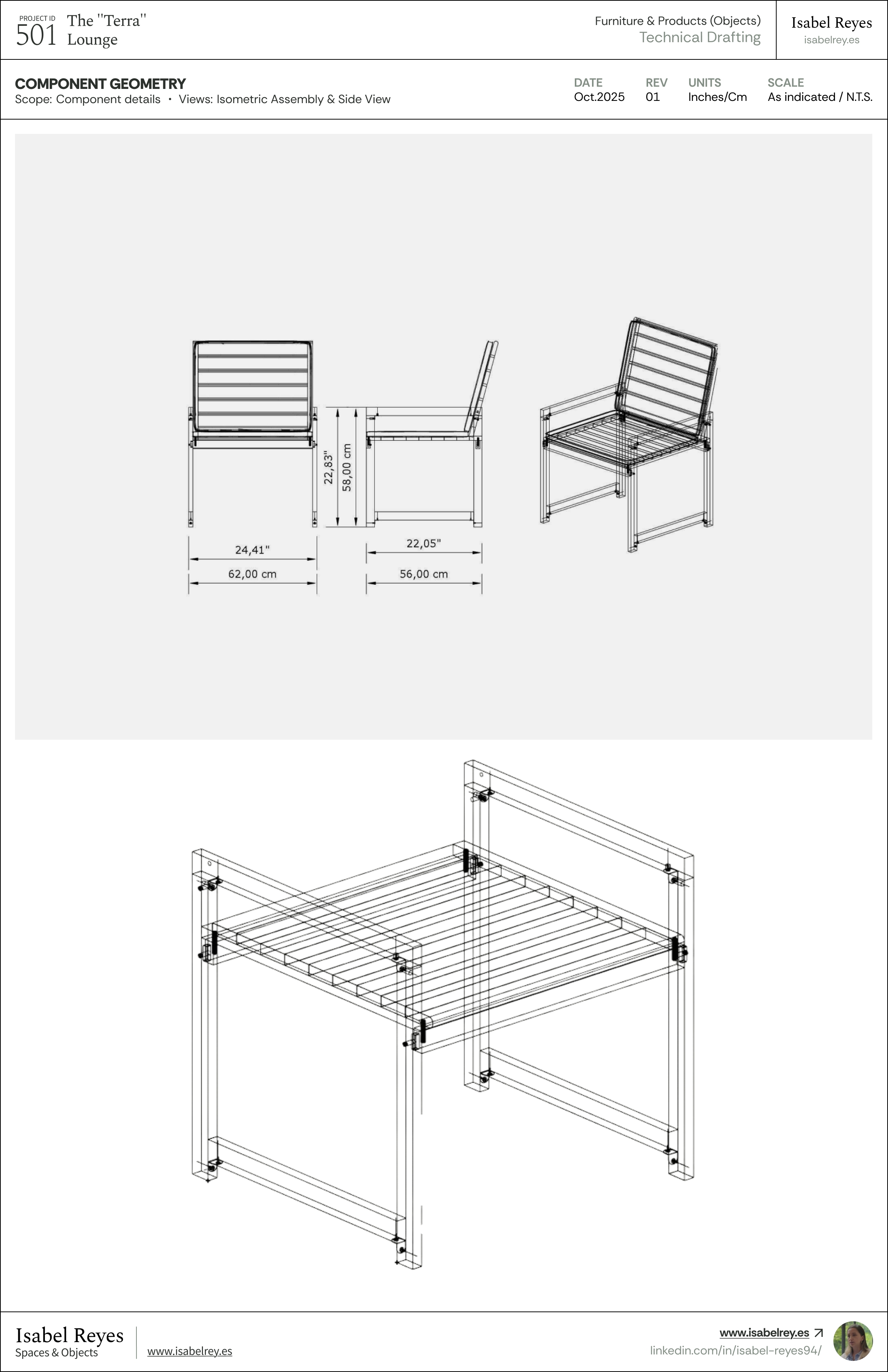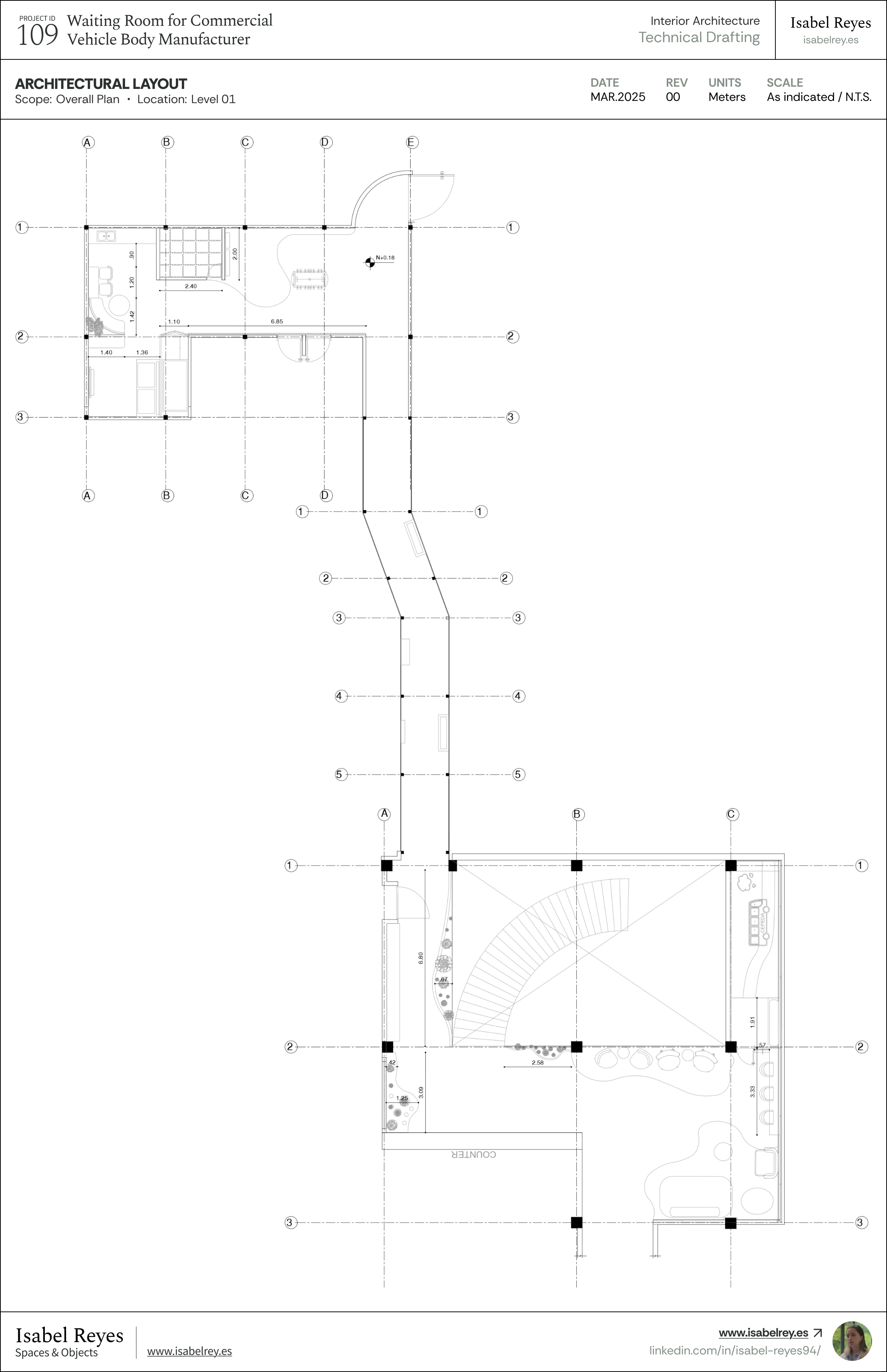 Hi! I'm Isabel Reyes. I bridge Interior Architecture and Industrial Design into great Spaces and Objects, delivering comprehensive construction documentation, technical drafting, and high-fidelity 3D visualization.